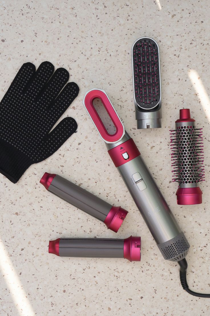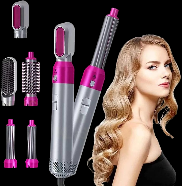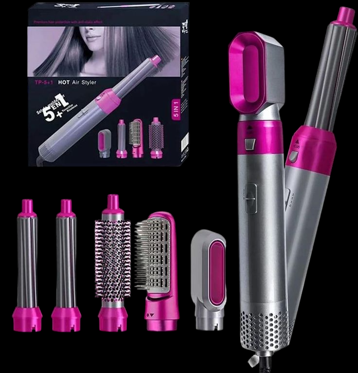 Transforma tu rutina de peinado con la Herramienta de Peinado Multifuncional 5 en 1, el aliado perfecto para lograr peinados dignos de salón en casa. Este versátil dispositivo combina cinco accesorios intercambiables que te permiten alisar, rizar, secar y dar volumen a tu cabello de manera rápida y sencilla.